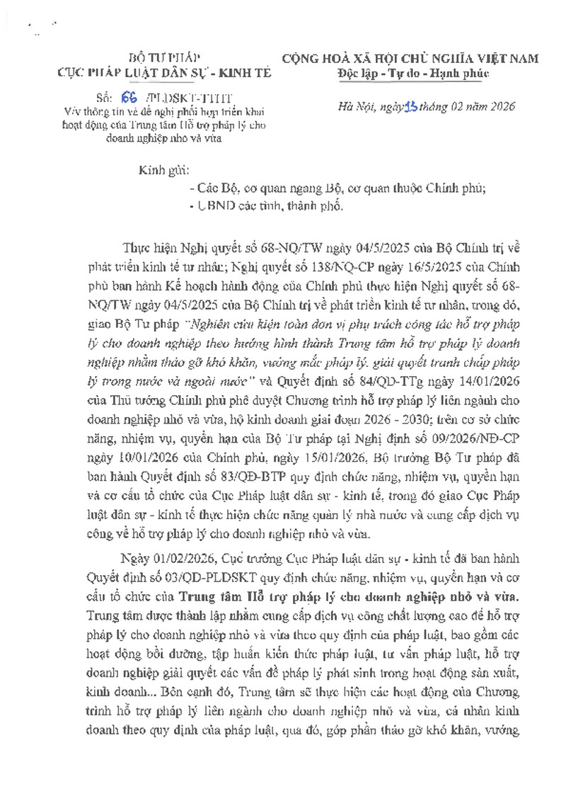 Hỗ trợ pháp lý liên ngành cho doanh nghiệp nhỏ và vừa, hộ kinh doanh 11/03/2026, 10:13:34 - Lượt xem: 1 Tweet Thêm vào danh sách Báo xấu Thông tin tài liệu Hỗ trợ pháp lý liên ngành cho doanh nghiệp nhỏ và vừa, hộ kinh doanh