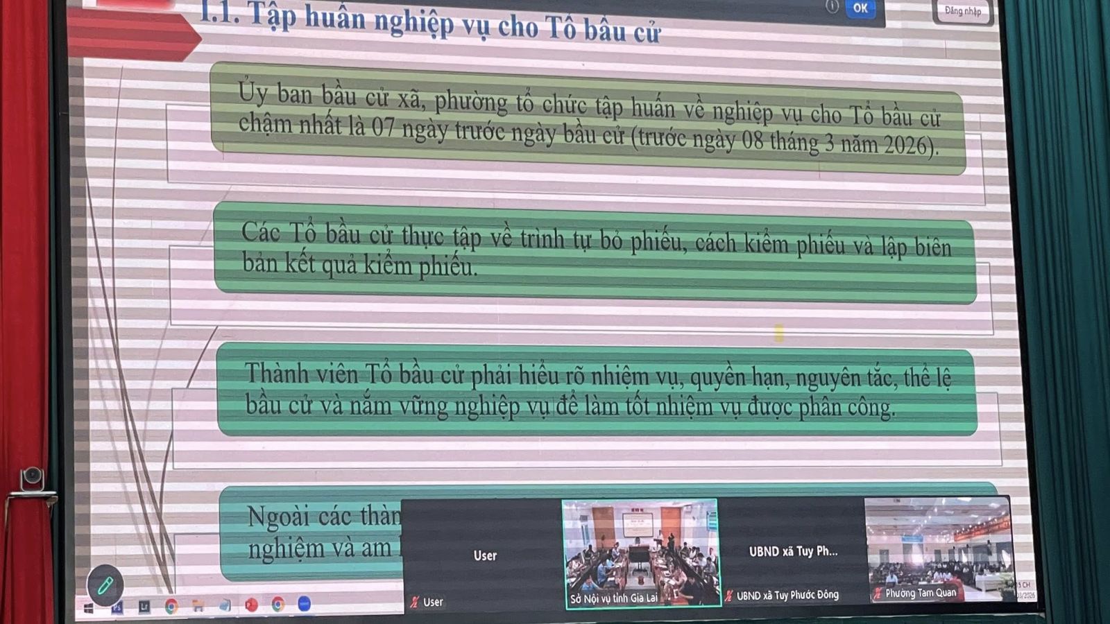 Thông qua hội nghị, đội ngũ làm công tác bầu cử được củng cố kiến thức, nâng cao kỹ năng, sẵn sàng thực hiện nhiệm vụ, góp phần tổ chức cuộc bầu cử dân chủ, đúng luật, an toàn và thành công tốt đẹp.