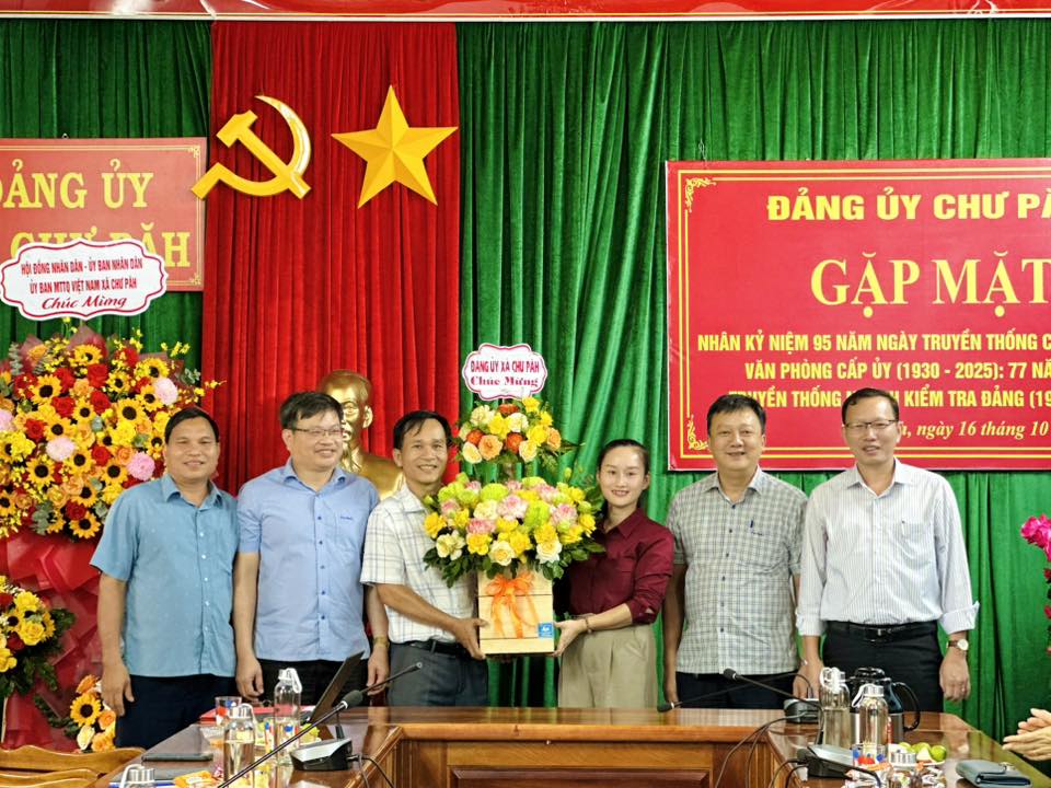 Nhân kỷ niệm 95 năm Ngày truyền thống ngành Tổ chức xây dựng Đảng (14/10/1930 - 14/10/2025); 95 năm Ngày truyền thống công tác Dân vận của Đảng (15/10/1930 - 15/10/2025); 95 năm Ngày truyền thống Văn phòng cấp ủy (18/10/1930 - 18/10/2025); và 77 năm Ngày truyền thống ngành Kiểm tra của Đảng (16/10/1948 - 16/10/2025). Chiều 16/10, Thường trực Đảng ủy xã Chư Păh tổ chức gặp mặt kỷ niệm Ngày truyền thống các cơ quan chuyên trách tham mưu, giúp việc của Đảng ủy.